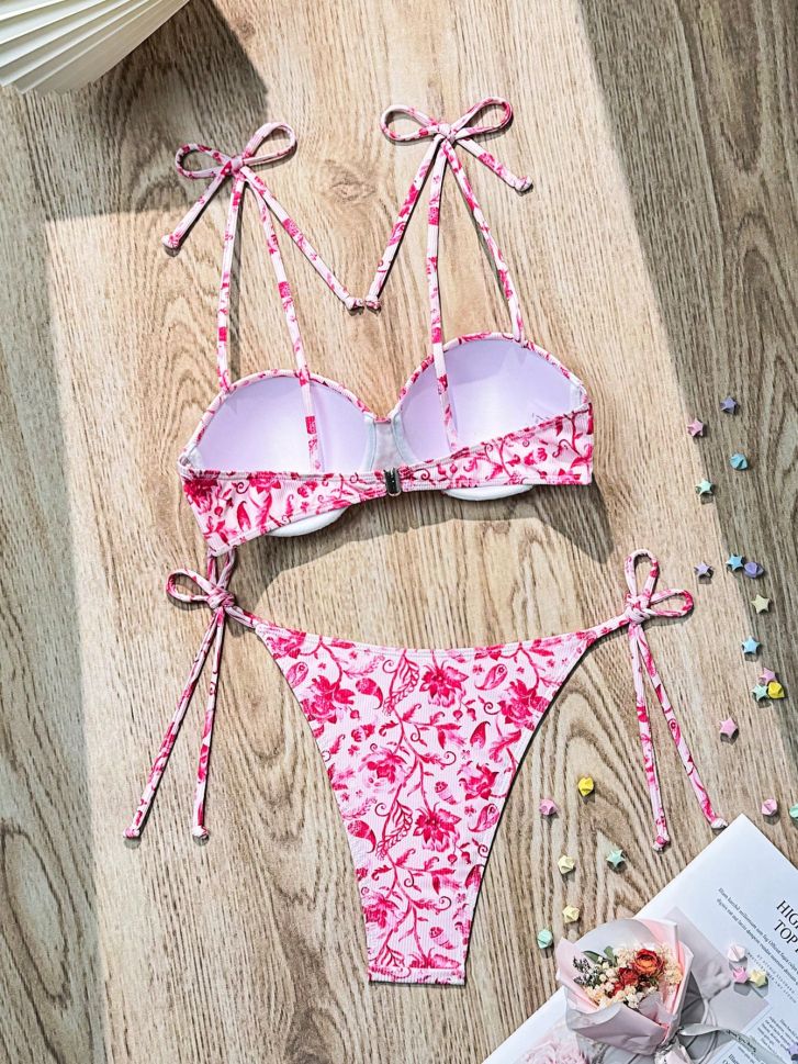 • Горнището е с оформена чашка и банел и се завързва на раменете