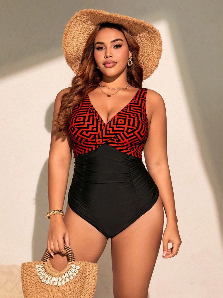 • Цял двуцветен бански, набран отпред