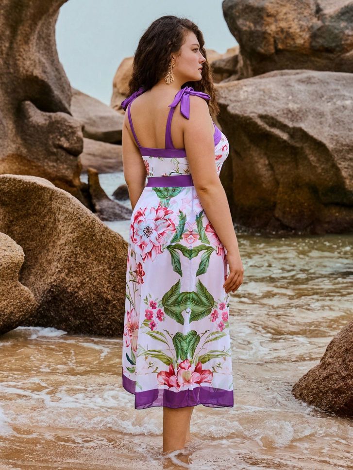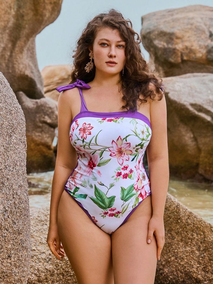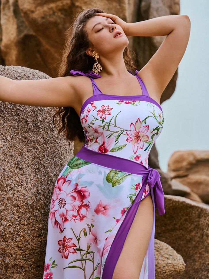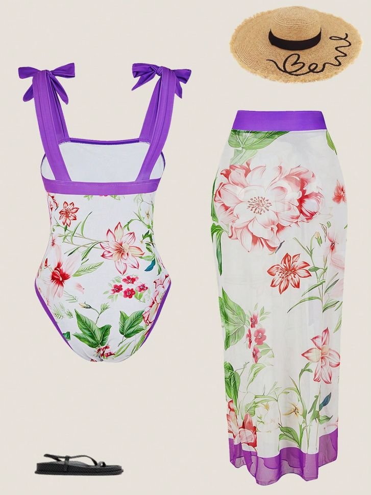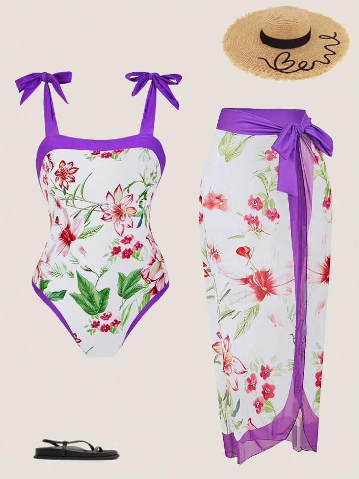 • Цял бански във флорален десен в комплект с парео