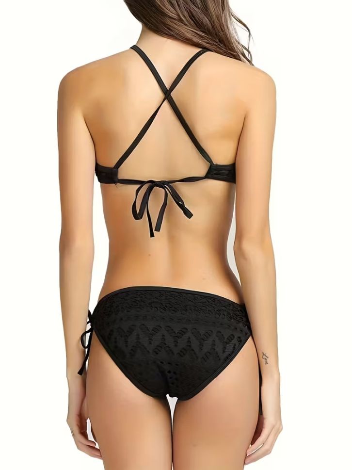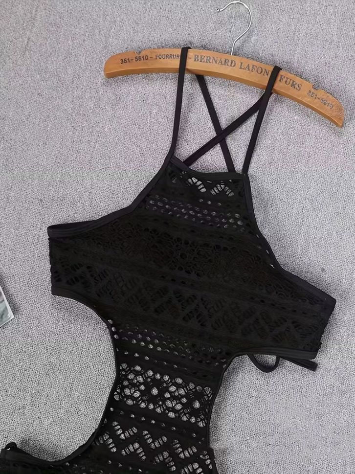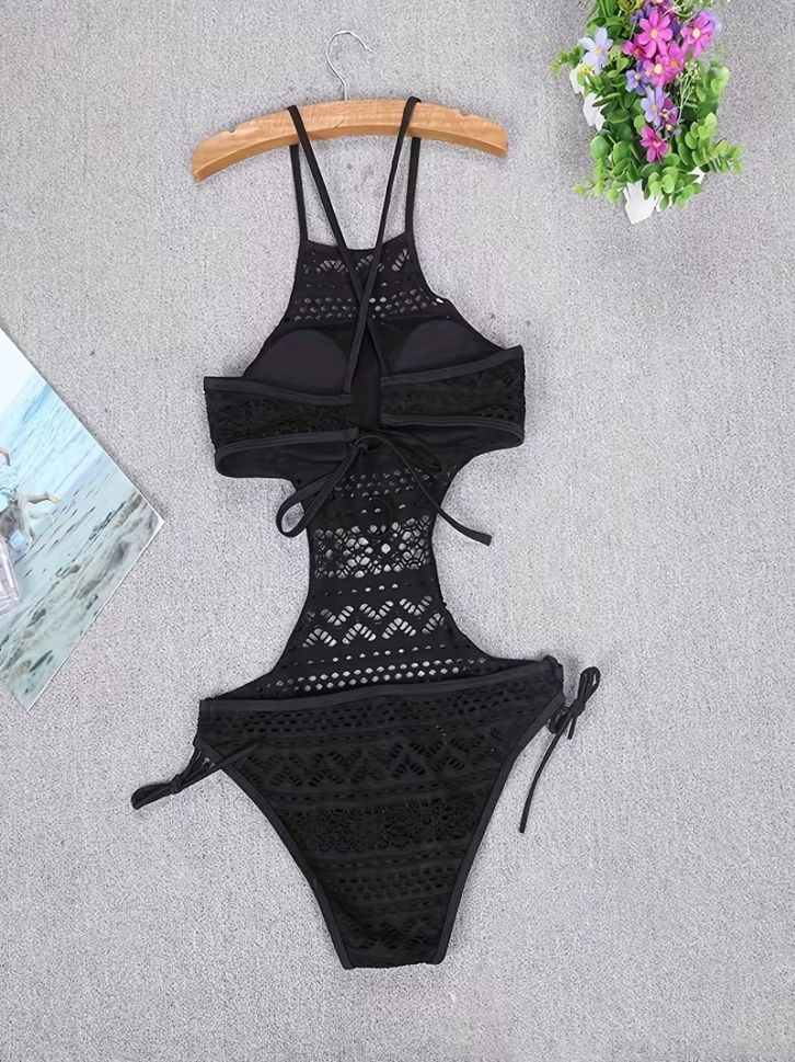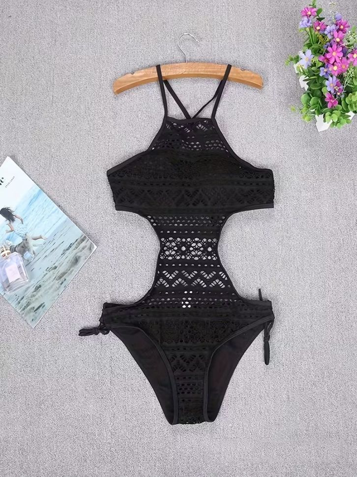 • Цял черен бански с плетиво