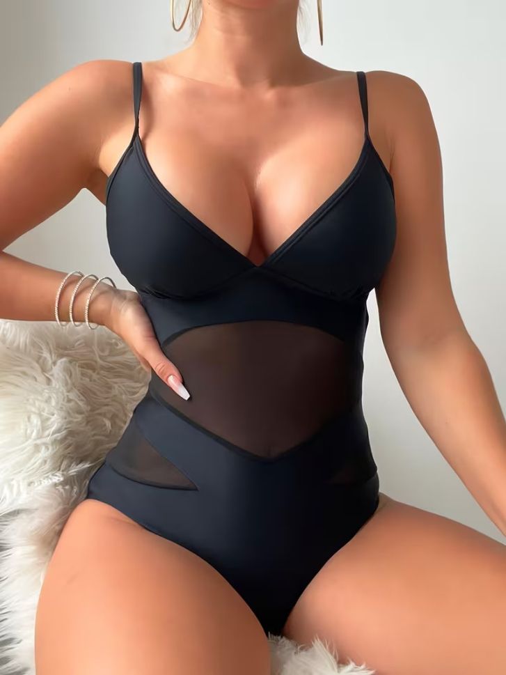 • Цял бански в черно с прозрачна част