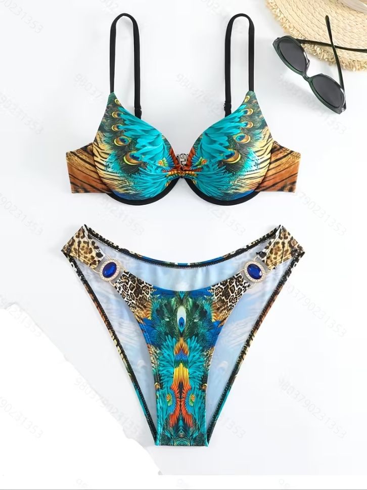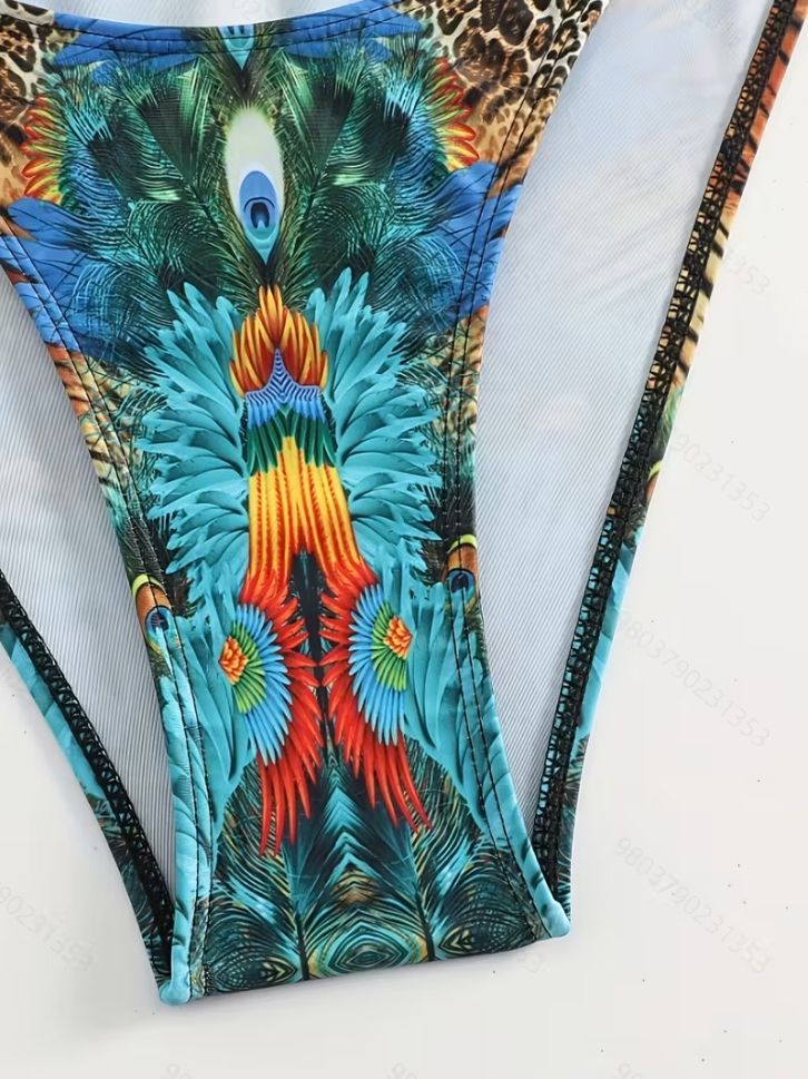 • Бански от две части с паунови мотиви