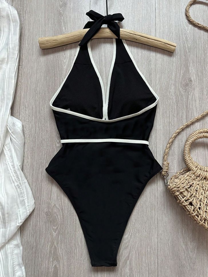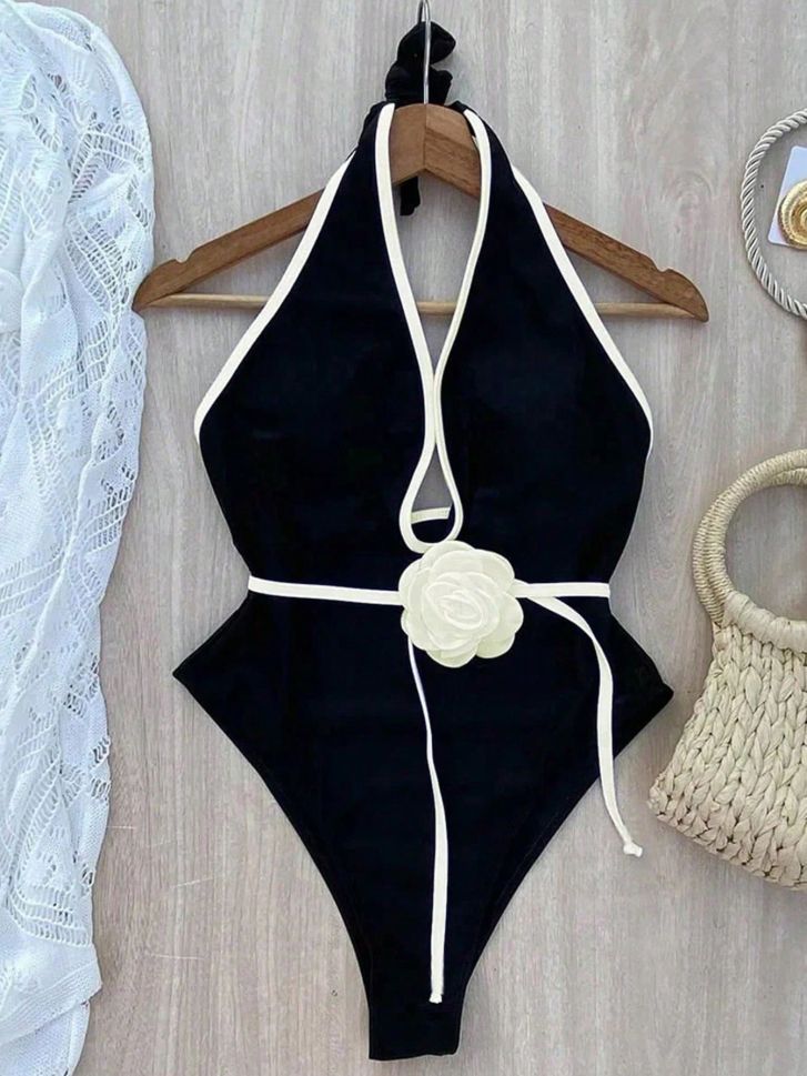 • Цял двуцветен бански с 3D роза